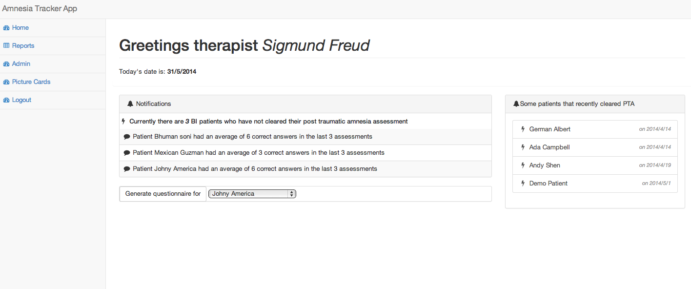 When a therapist or a medical staff first login, not only are they greeted with a very friendly message, but they are also given an update on the recent developements at the brian injury (BI) ward or facility.
